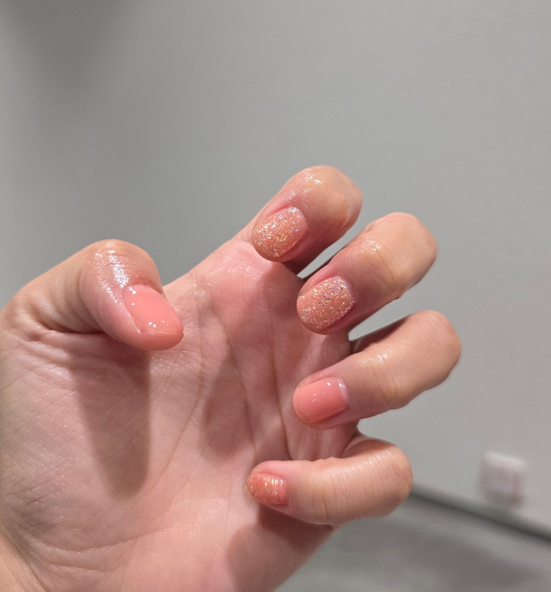 네일 받은거구요! 반짝이 위치는 제가 정해서 요청드렸습니다!
