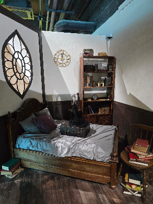 아래 사진처럼 아예 공간까지 꾸며진 곳이 2곳(시계 배경 및 기숙사 방 배경), 다른 인생네컷처럼 겉의 테두리만 꾸며진 곳이 2곳 있습니다.