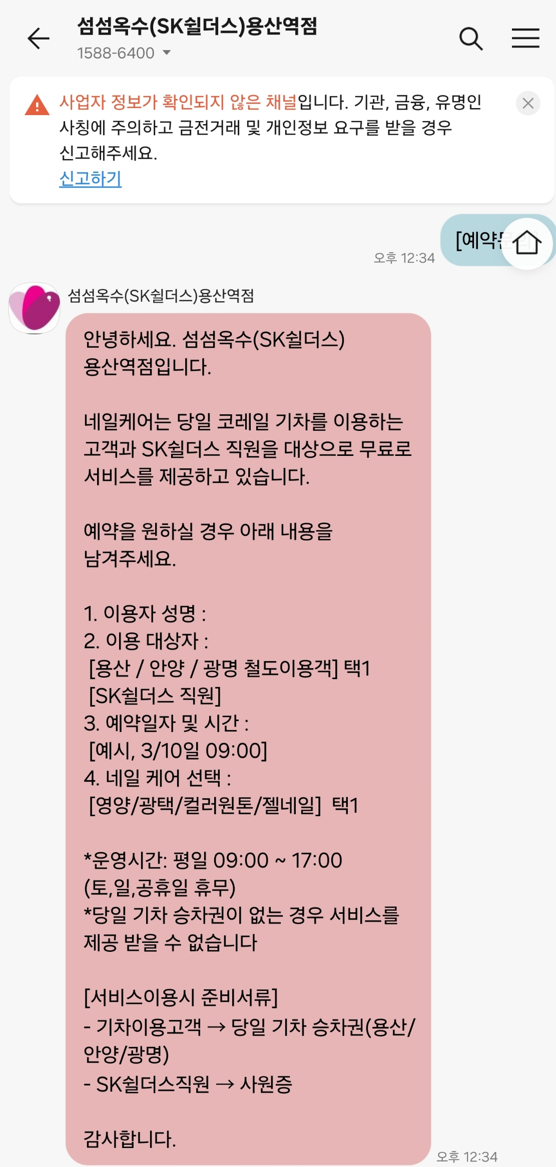무료로 네일까지 받을 수 있는 섬섬옥수 서비스 다들 이용해보세요!
